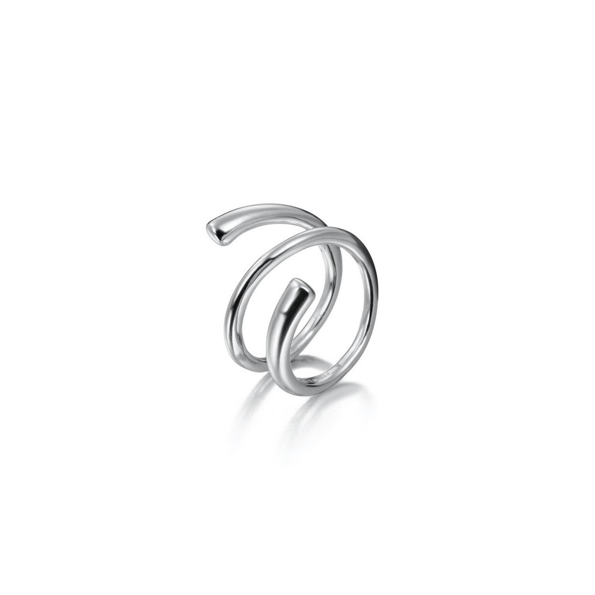 El acabado brillo realza la pureza de la plata y acentúa el juego de reflejos sobre las superficies redondeadas del diseño. La pieza combina volumen y ligereza, aportando un carácter escultórico que define una estética contemporánea.