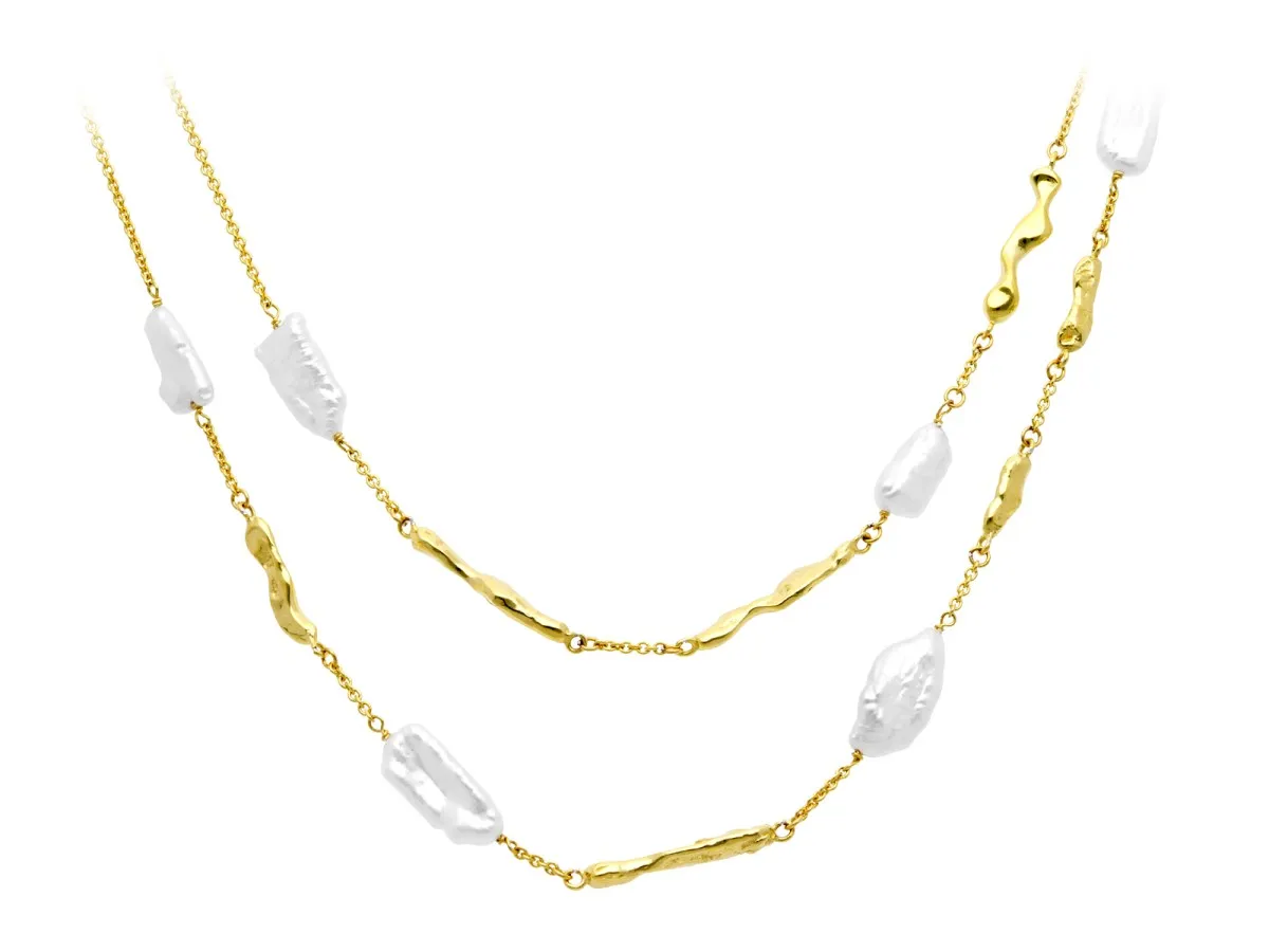 Gargantilla Tsuru doble en de Plata de Ley 925 bañada en oro amarillo de 18 qts. y perlas.