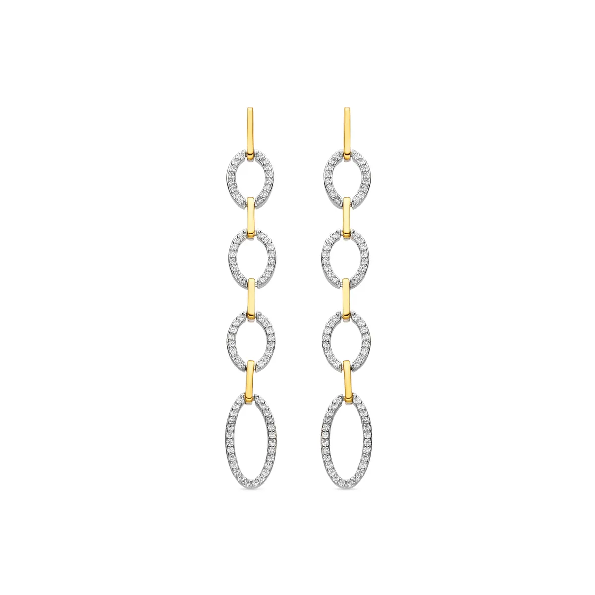 Pendientes Makonza largos formados por cuatro orlas de diferentes tamaños en Plata de Ley y circonitas.