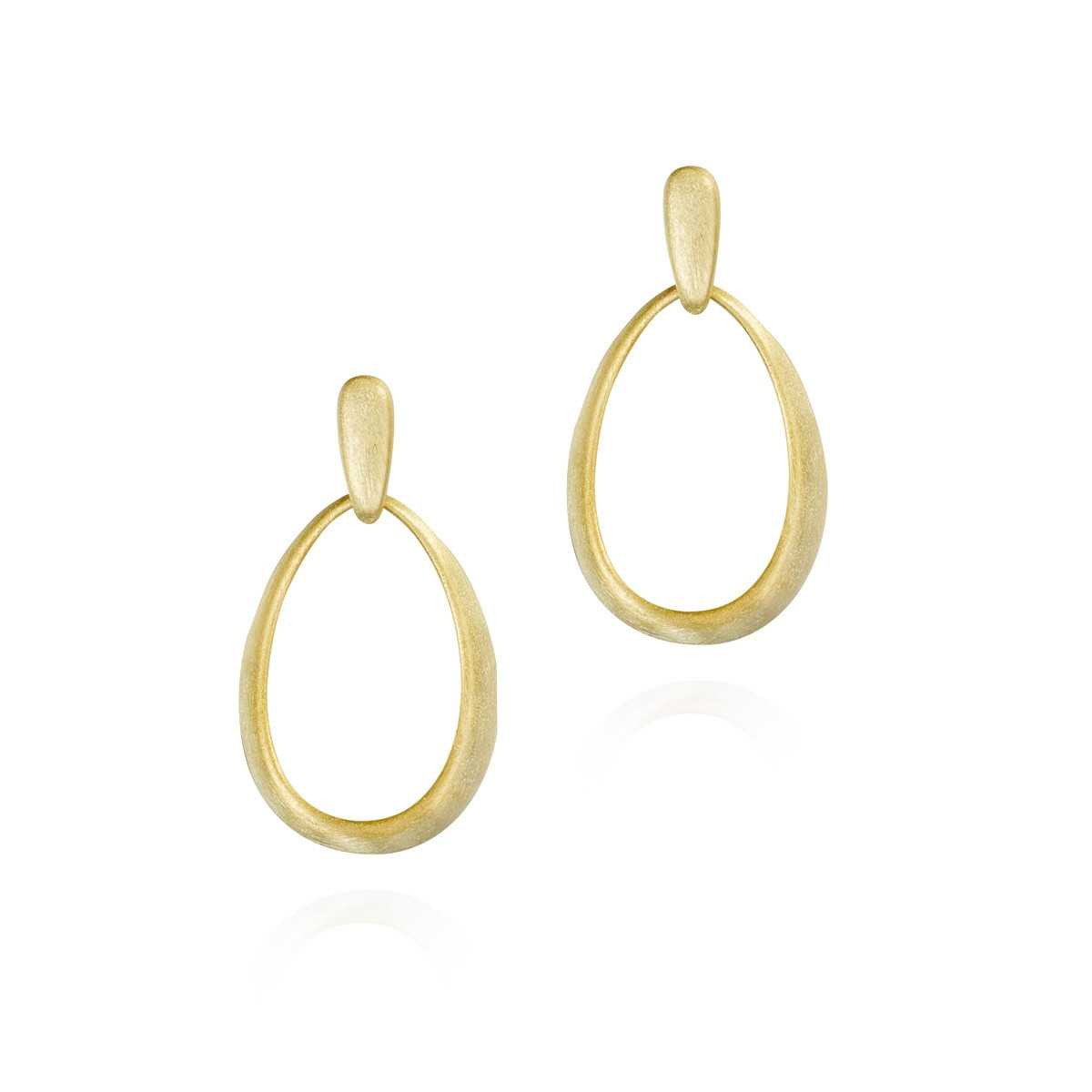 Pendientes de 29 mm de largo, con forma ovalada de la colección MIA de Plata de Ley 925. Baño de Oro 18k.