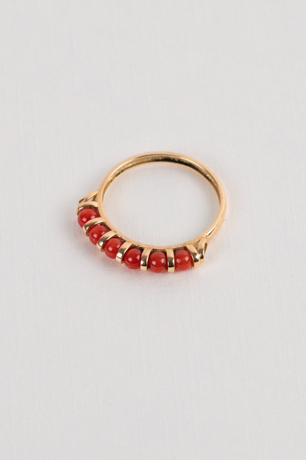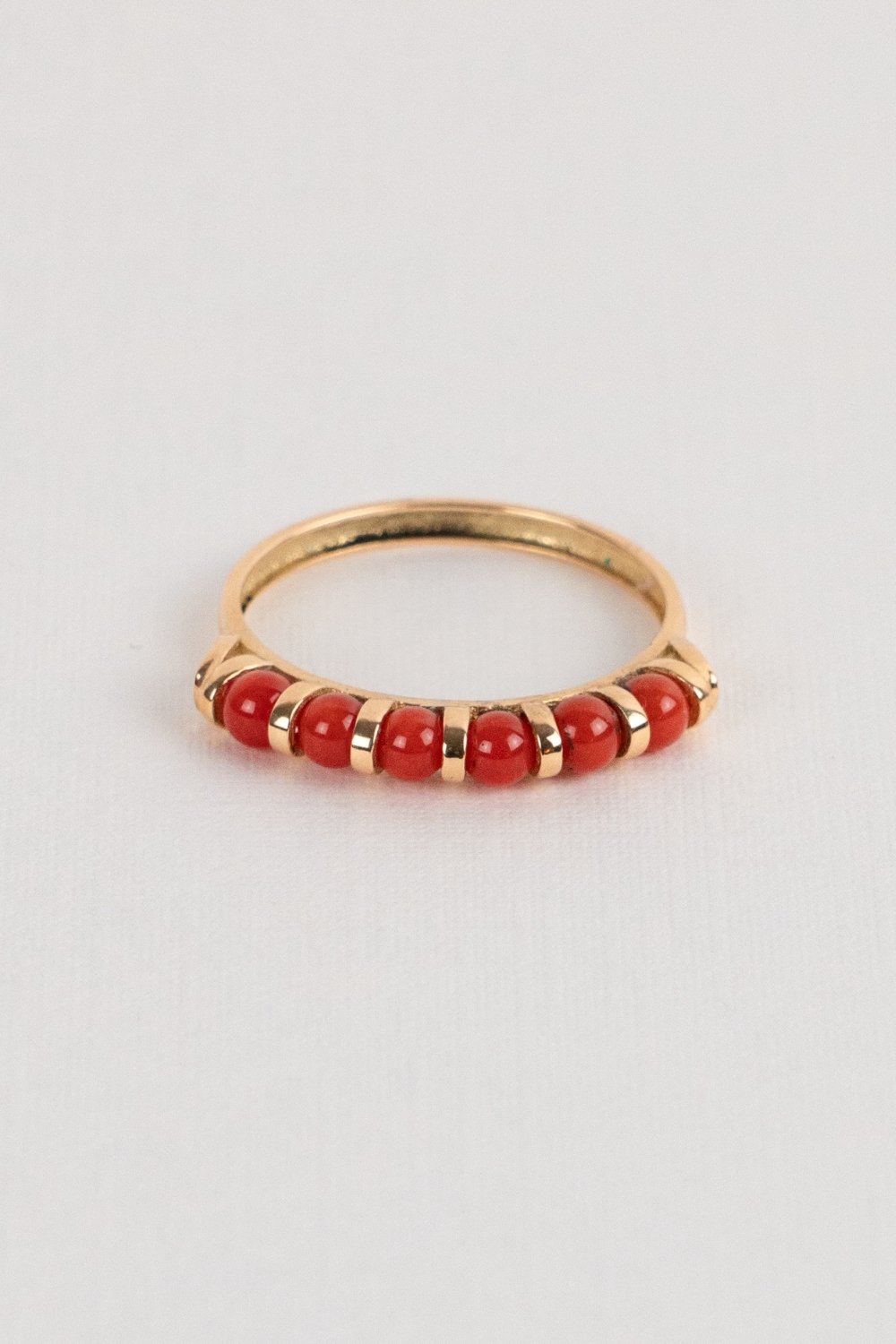 Sortija de la colección Matisse de oro amarillo de 18 qts, formado por seis bolitas de coral.